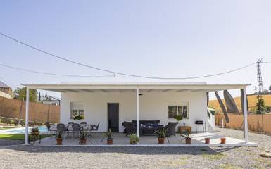 Casa de vacaciones en Cártama, en la provincia de Málaga, Andalucía. Si quieres relajarte y, al mismo tiempo, contar con todas las comodidades y los servicios, esta casa en Cártama te proporciona todo lo que necesitas para pasar tus vacaciones de la mejor manera posible. La cercanía a Málaga y a sus espectaculares monumentos, a Torremolinos y sus famosos chiringuitos y a la impresionante naturaleza del interior de la provincia, te permite disfrutar de diferentes escapadas cada día. Y cuando quieras relajarte y desconectar, encontrarás en esta casa todo lo necesario para una estancia inolvidable. Esto se debe, sobre todo, a la maravillosa piscina climatizada, completa de un banco de burbujas de agua. La piscina está climatizada todo el año y la temperatura apróximada del agua es de 28ºC, dependiendo de la temperatura exterior. Esta casa está recién reformada y cuenta con un estilo minimalista y moderno para aprovechar todos los espacios, tanto interiores como exteriores, creando un ambiente confortable para que hasta seis personas puedan disfrutar verdaderamente de sus vacaciones. En su interior, la casa presenta un amplio salón comedor, equipado con una bonita mesa de comedor y un sofá confortable, proporcionando a los huéspedes con una dependencia agradable donde charlar y relajarse. Desde el salón, puedes acceder a la cocina independiente, equipada con todo el menaje y electr...