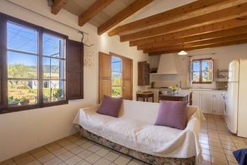 En el corazón de Mallorca en las afueras del hermoso pueblo de Sencelles le da la bienvenida la encantadora casa de campo "Son Pou". La casa de vacaciones de 125m² consta de una sala de estar, una cocina bien equipada, 2 dormitorios y un baño, por lo que puede alojar a 4 personas. Los servicios adicionales incluyen Wi-Fi, chimenea, televisión y lavadora, mientras que una cuna y una trona están disponibles bajo petición. Gracias a los gruesos muros, en verano se está agradablemente fresco en la casa de campo, incluso sin aire acondicionado. En la amplia zona exterior de la propiedad vallada, le espera una terraza amueblada y parcialmente cubierta, así como un jardín con piscina y ducha exterior. Aquí podrá hacer barbacoas, nadar o simplemente disfrutar del sol. En el centro del pueblo, a 10 minutos a pie (700 m), hay 2 restaurantes y un supermercado. El idílico pueblo también merece una visita por sus bonitas casas de estilo tradicional mallorquín. A las playas más cercanas se llega en media hora en coche. La capital de la isla, Palma, y el aeropuerto del mismo nombre también están a sólo 30 minutos en coche (31 km). hay aparcamiento disponible en la propiedad. No se permiten mascotas Nombre: Son Pou...