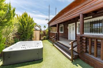 Cabaña rural de madera en Coín con piscina privada compartida, rodeada de naturaleza y espectaculares vistas a la montaña, ideal para unas vacaciones tranquilas en la Costa del Sol 🌞🏞️. ¡Hola! Somos CUBO'S HOLIDAY HOMES, especializados en alojamientos vacacionales desde 2005. Ubicada en un entorno natural único, esta cabaña de madera en Coín ofrece un refugio perfecto para familias o grupos de hasta 4 personas donde no se dispone de wifi. Disfruta de una parcela privada con cultivo de aguacates y nogales, donde podrás pasear por múltiples caminos que invitan a conectar con la naturaleza y admirar el paisaje de montañas y cielos azules. La propiedad comparte una amplia piscina con otra cabaña gemela, situada a 50 metros para garantizar privacidad y tranquilidad entre huéspedes. La zona de piscina cuenta con pérgola, hamacas y espacios sombreados para relajarte tomando el sol o leyendo un libro 📚☀️. El alojamiento de 40 m² dispone de dos dormitorios —uno con cama de matrimonio y otro con dos camas individuales—, un baño con plato de ducha, cocina americana totalmente equipada (vitrocerámica, nevera, congelador, lavadora, cafetera, tostadora y más), y un salón comedor con televisión y aire acondicionado solo en esta zona. También encontrarás calefacción por bomba de calor y ventiladores para asegurar tu confort en cualquier época del año. La terraza de 5 m² y el jardín con mobi...