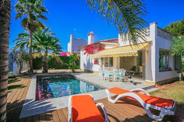 Fabulosa villa en pleno centro de Salou, con 3 dormitorios dobles bien equipados, 2 baños completos. Capacidad hasta 7 personas. Decorada con todos los detalles, de estilo lujoso. ¡Maravillosa piscina privada, barbacoa, incluso futbolín! Podrás disfrutar de la villa al máximo. Zona exterior para comer al aire libre y zona chill-out. AC en toda la casa. Cocina totalmente equipada: lavadora, lavavajillas… Disfruta de la vida en Salou: sus playas, Port Aventura (30’ andando), Costa Caribe, Ferrari Land, golf, deportes acuáticos, paseo marítimo, karts… A 5 minutos en coche y a 18 andando de ambas playas. Casa para disfrutar en familia. No se permiten fiestas de ningún tipo...